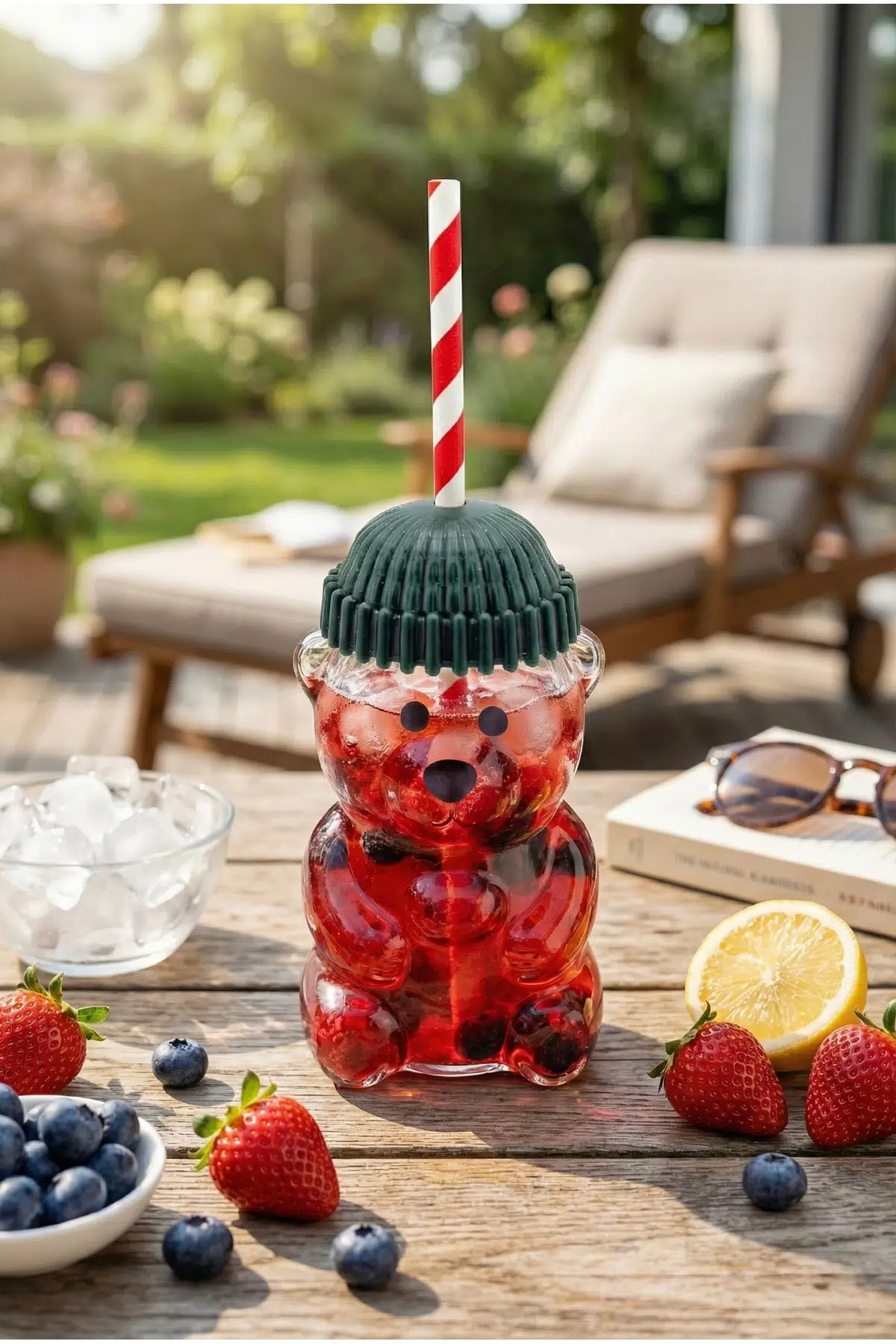 - Cam Ayıcık Figürlü İçecek Bardağı - 500 ml