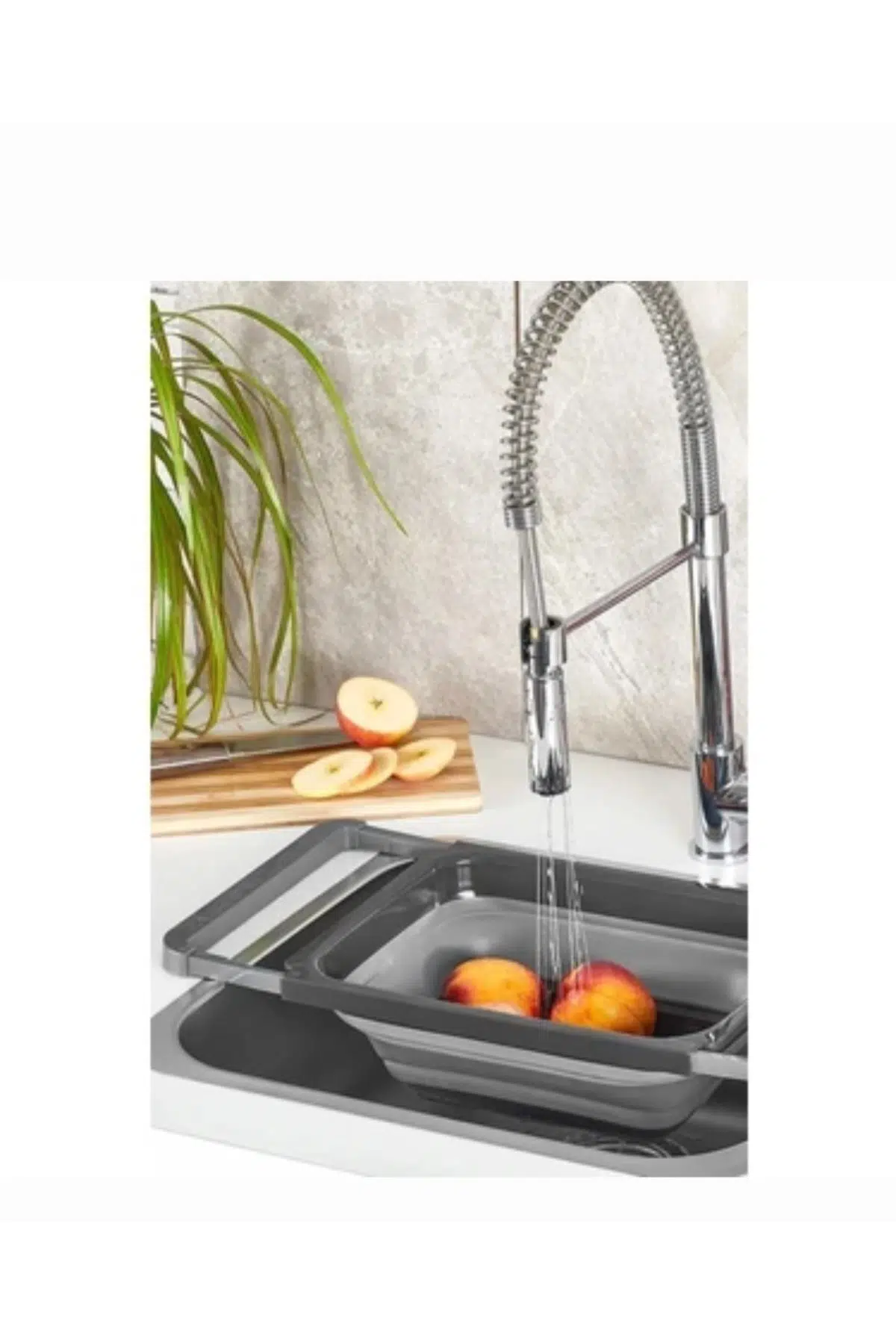 Katlanabilir dikdörtgen süzgeç yanlardan açılan kulpları sayesinde lavabonuza destekleyebilirsiniz.; Sebze ve meyvelerinizi en pratik şekilde yıkayıp temizlemenizi sağlar.; Kullanımı ve temizlenmesi oldukça basittir, en pratik mutfak gereçlerindendir.; Küçük boyutu sayesinde mutfağınızda az yer kaplar özel tasarımı sayesinde gıdalarınızın dökülmesini engeller.; BPA içermez, sağlığa zararlı maddeler içermez.; Ürün Ölçüleri: 39 x 26,5 x 4,5 cm Katlanmış Hali ; 55 x 26,5 x 12 cm Kanatları Açılmış Hali